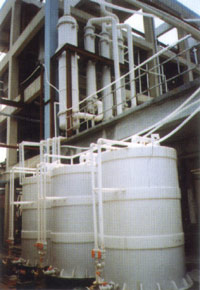 整套装置采用石墨改性聚丙烯隆膜吸收器、喷淋填料塔、循环槽、循环泵、风机(亦用真空)、风管等。